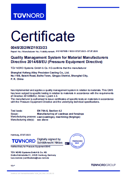 Kefeng is also a professional manufacturer of stainless steel and alloy forgings and castings, supplying products that meet both domestic and international standards, including ASTM, DIN, EN, NACE, API, GB, and JIS. Our material portfolio covers austenitic stainless steels, super austenitic stainless steels, duplex stainless steels, nickel-based alloys, precipitation-hardening stainless steels, cobalt-based alloys, and copper alloys. With extensive experience in heat treatment and metallurgical testing, Kefeng is equipped with a wide range of heat treatment facilities, ensuring material reliability from the raw stage onward. In addition, our factory houses advanced testing equipment, such as alloy spectrometers, universal testing machines, low-temperature impact testers, hardness testers, 1000× optical microscopes, corrosion resistance testing systems, and a suite of nondestructive testing instruments imported from the United States and Germany.